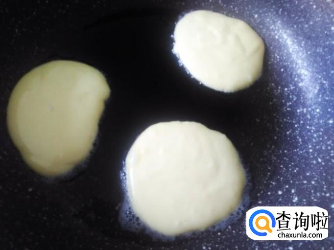 开火下少量的油进去,然后用勺子把浆糊装到锅里,用小火煎。