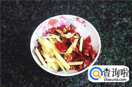 把生姜去皮切成片,把辣椒去籽切成片,或者用剪刀对半剪开。大蒜籽用刀背拍下去皮切片。香葱洗干净切段备用。八角和花椒取少量放在一起。