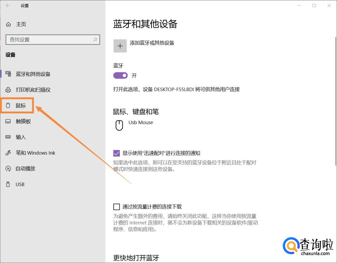 点击【设置】之后,我们在界面左边找到【鼠标】并且点击它。