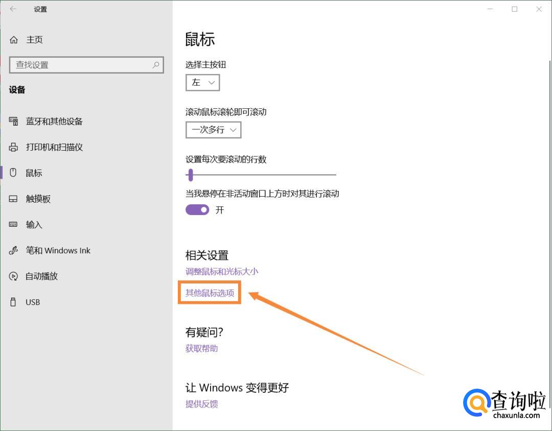 接下来我们点击【鼠标】界面的右边【其他鼠标选项】。