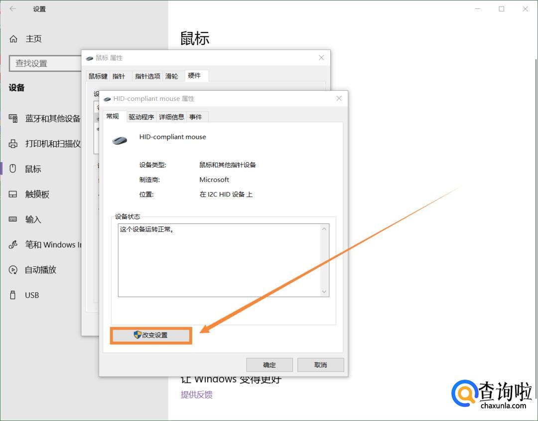 点击【属性】之后,我们找到左下方的【更改设置】并点击它。