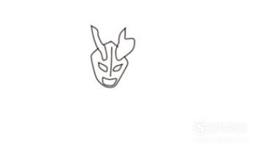 先画他盾牌形状的脑袋,接近于菱形,再画出他的鼻子、眼睛和嘴。鼻子用一条竖线表示。