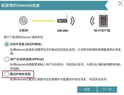 5、根据运营商给到的连接类型,选择合适的方式连接点击下一步。