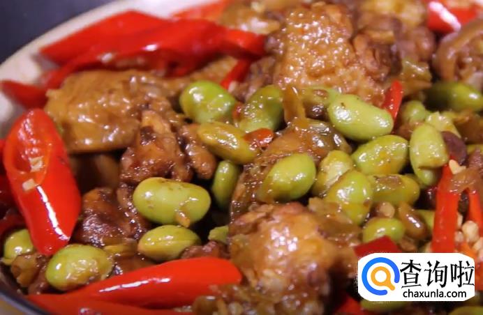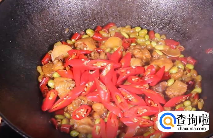 翻炒得差不多了之后,就可以捞出装盘了。这样,这道毛豆烧鸡就完成了。