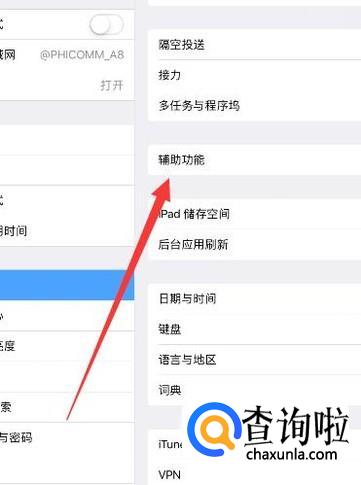在“通用”页面,找到“辅助功能”,点击并进入,如图所示。