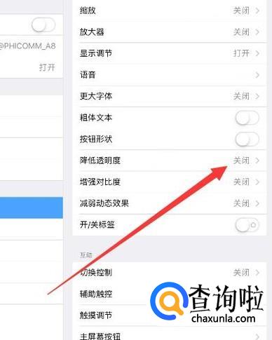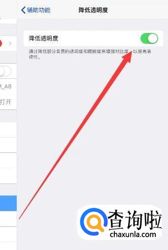 返回上一页面,点击“降低透明度”,如图所示。