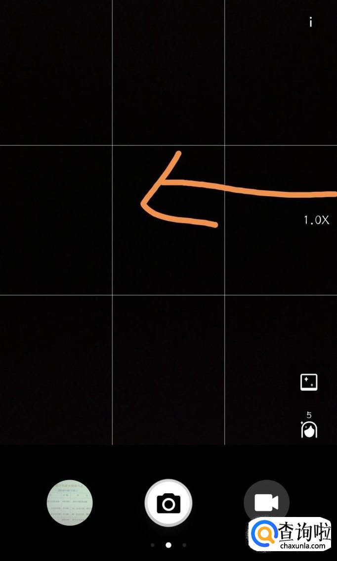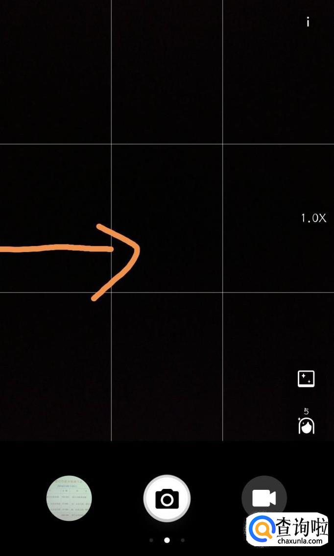 在相机界面中,沿着箭头方向从手机边侧向右滑动