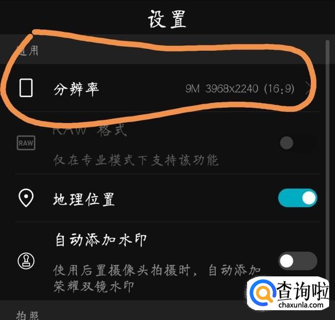 在出现的设置界面中选择“分辨率”选项,点击进入