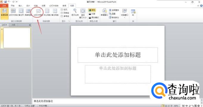 打开ppt,点击“视图”下方的“幻灯片母版”。