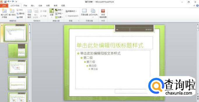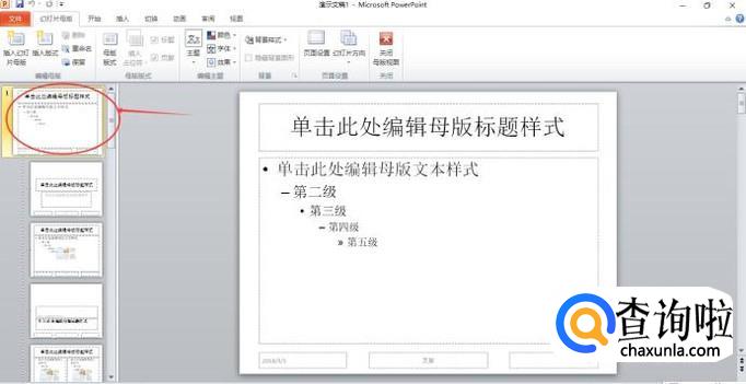 界面左方出现幻灯片母版视图,我们需要选中母版中的第一张ppt来进行编辑。