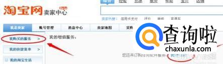 作为卖家我们在淘宝上有属于自己的个人中心,点击淘宝页面上方”卖家中心”,点击左上方的“我购买的服务”,然后会显示出一个界面,在此界面的右上角有“我要订购”,点击便可进入新的界面,点击“服务”输入“运费险”,然后点击搜索。