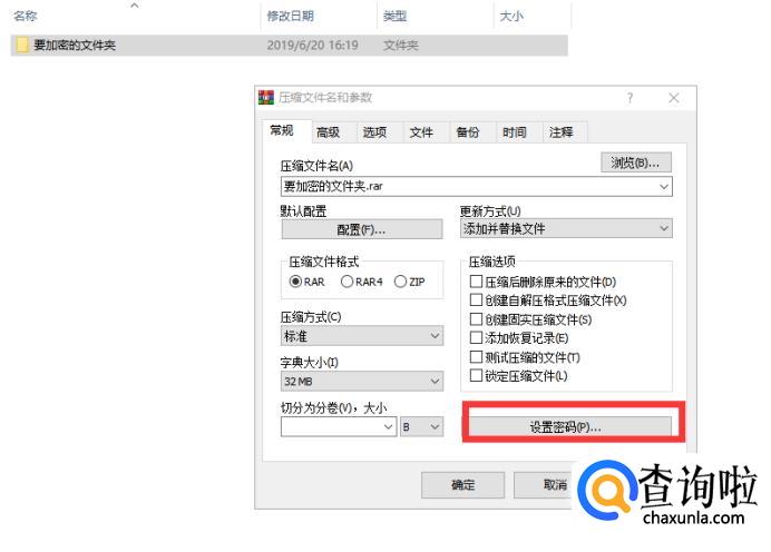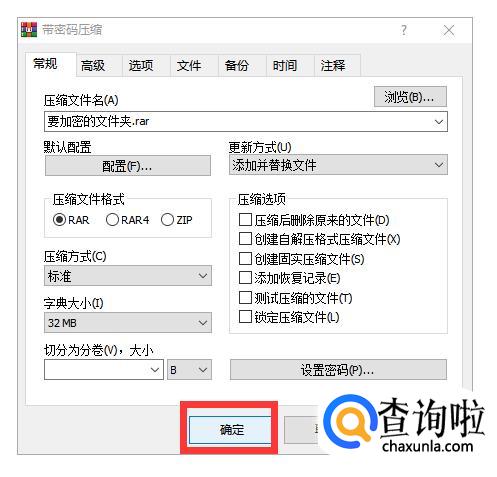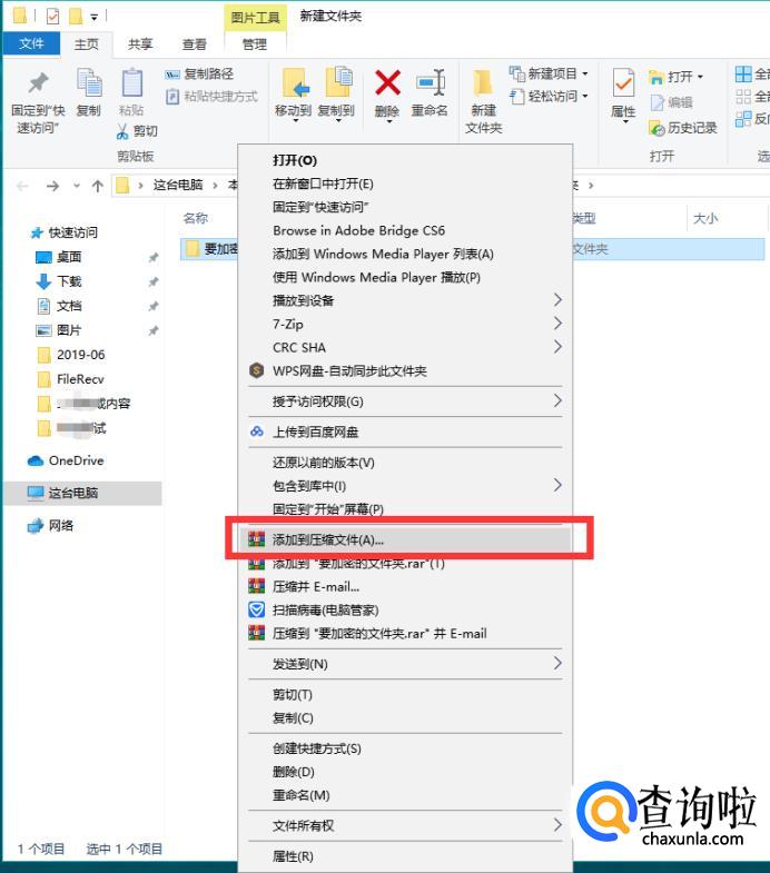 鼠标右键需要加密的文件夹,选择“添加到压缩文件”打开,进入下一步。