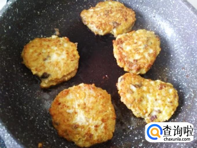 然后每隔一分钟翻转一次,连续翻转5次左右,把鱼饼煎得金黄色就可以了。