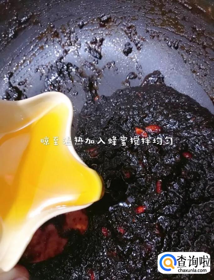 然后趁热加入蜂蜜搅拌均匀,如下图所示。