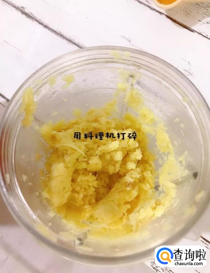 首先将生姜洗干净去皮倒入料理机中打碎,如下图所示。