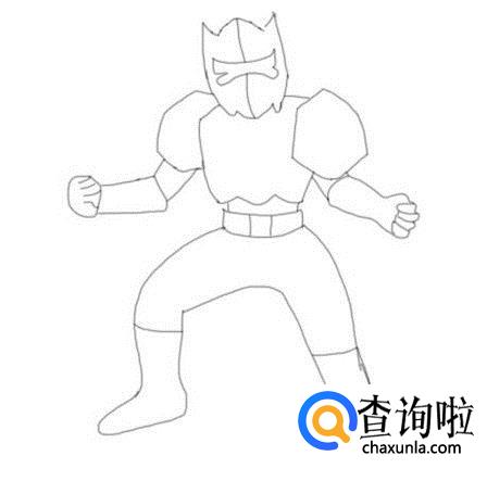 再在肩膀的基础上画出铠甲勇士的身体及腰部,如图所示: