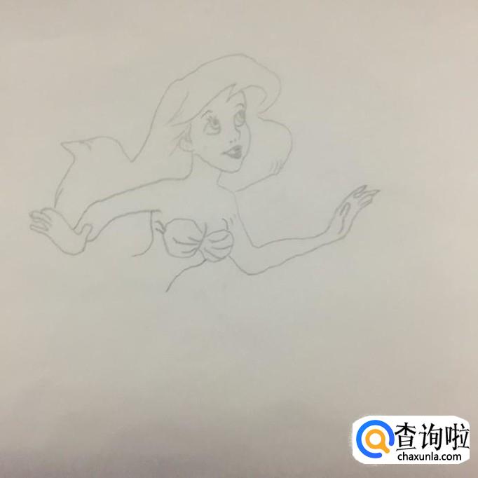 接着画出美人鱼的胸和腰,如下图所示。注意画这部分的时候,要突出美人鱼的腰身。