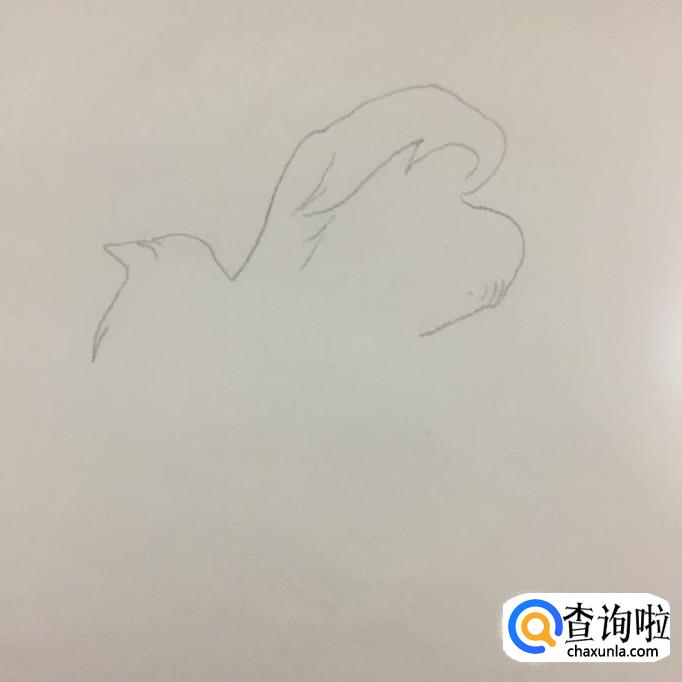 首先用铅笔在A4纸上画出美人鱼的头发,如下图所示。注意画这部分的时候,应整体向右倾斜。