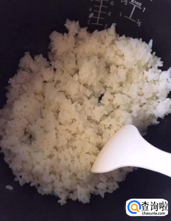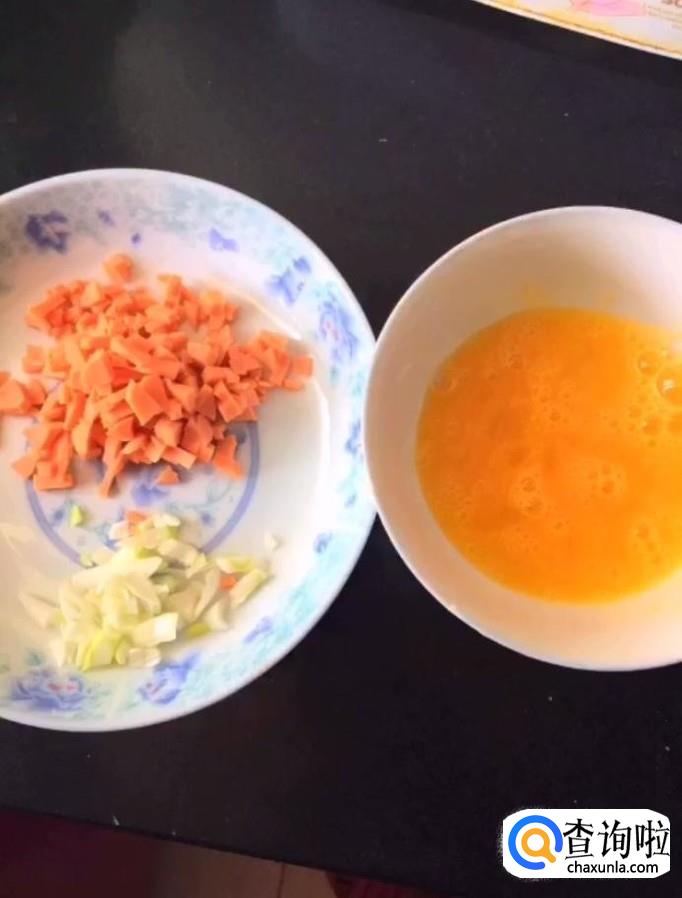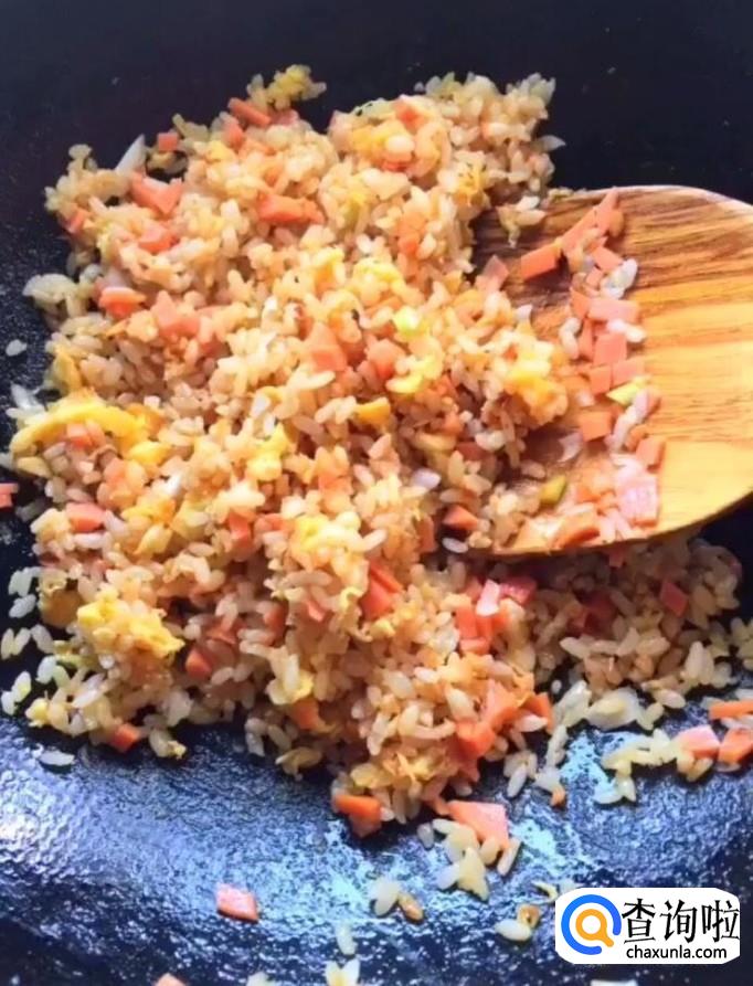 然后我们将它们放入锅中炒熟,做成蛋炒饭备用