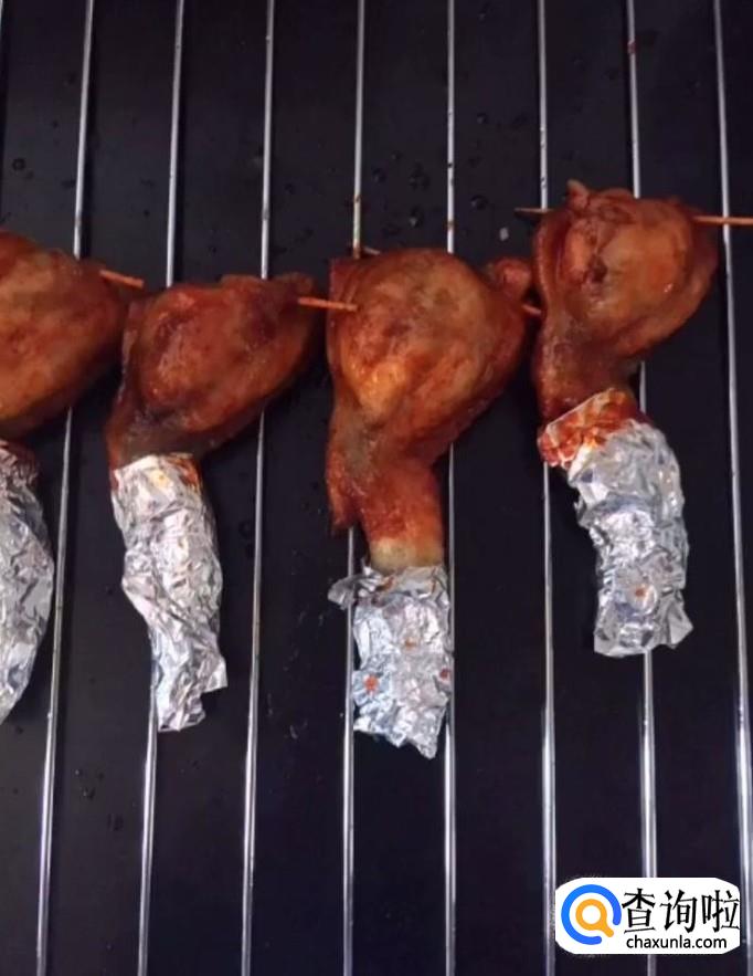 全部做好以后,我们把烤箱预热一下,上下火150度,放入烤箱烤20分钟取出刷上一层蜂蜜水,再次放入烤箱烤十分钟,烤好以后取出刷上一层烧烤酱再次烤十分钟