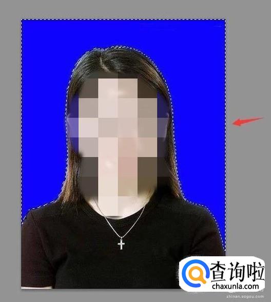 选择魔术棒工具在人物的背景上点击鼠标左键就得到了背景的选区,如图所示: