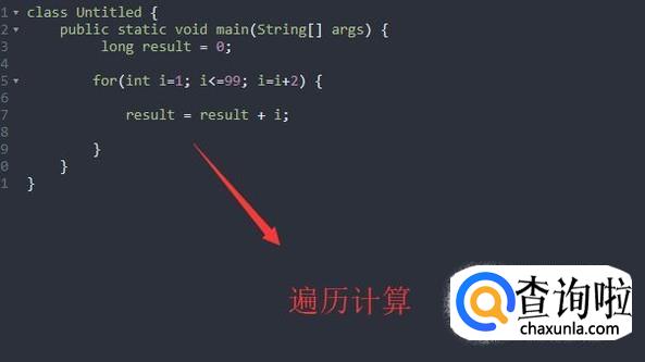 然后我们在main函数中声明一个整型的变量,然后进行遍历累加奇数的和,如下图所示