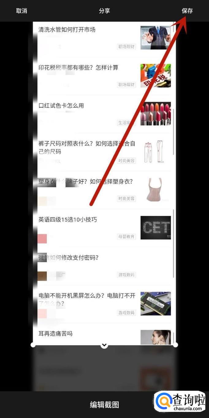 截取完想要截取的部分,点击“保存”即可完成长截图操作,如图所示。