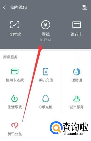 进入之后,点击“零钱”,进入下一页面,如图所示。