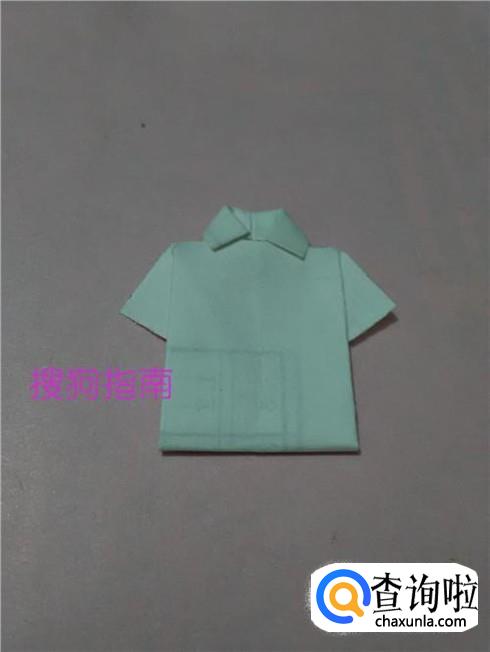 将下面的边向上折,折进领子下面,衬衫就折好了。