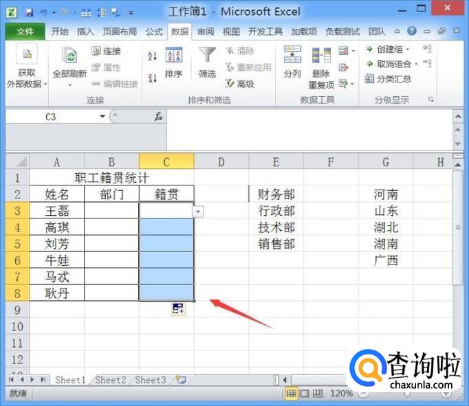 设置好之后,点击确定可以看到该单元格就出现了子级菜单,如图所示:
