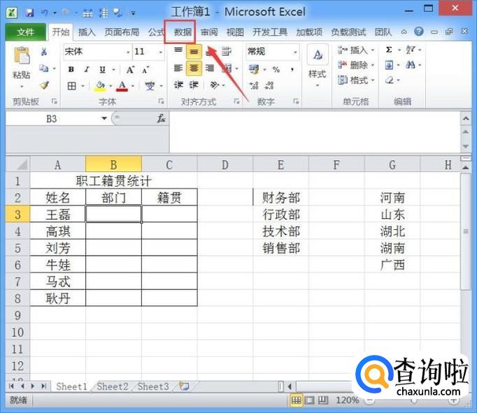 我们将需要的处理的excel表格打开,进入到该表格的操作界面,然后选择表格里的单元格再在菜单里找到数据选项,如图所示: