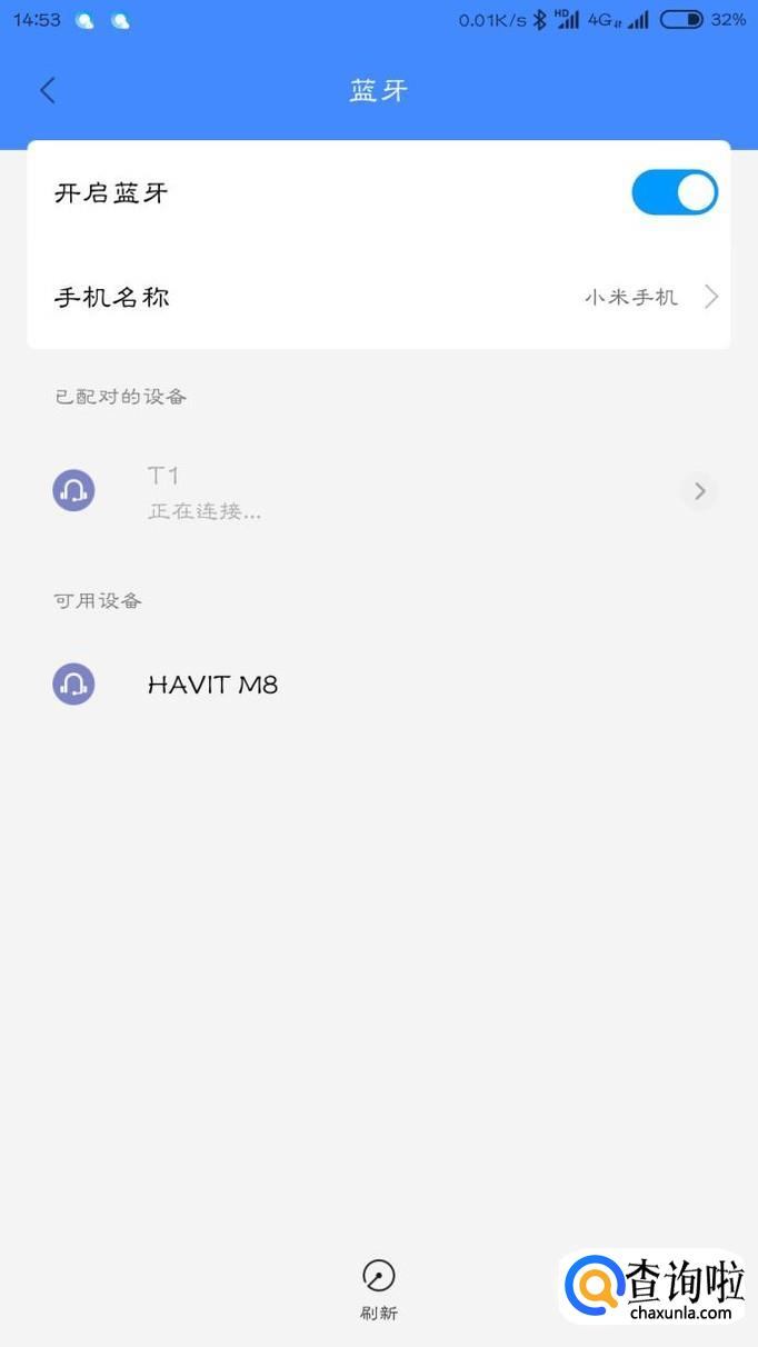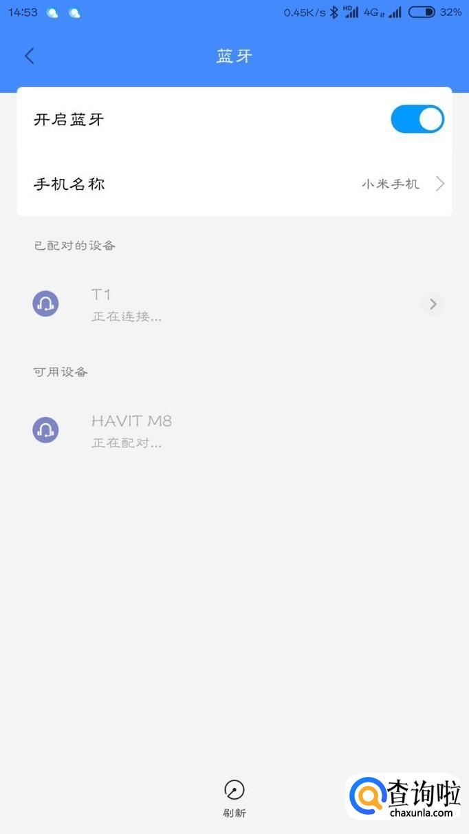 然后蓝牙小钢炮就开始闪光了,这时候打开手机的蓝牙,准备连接。