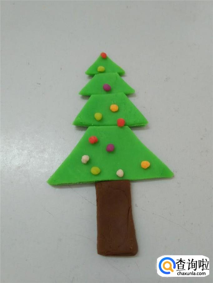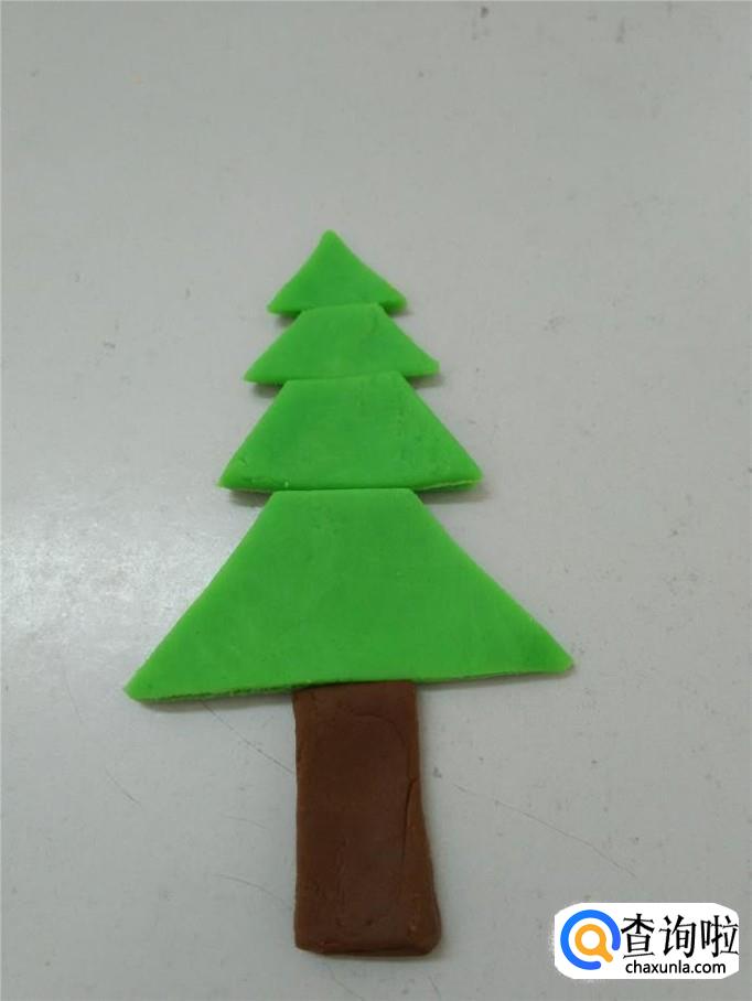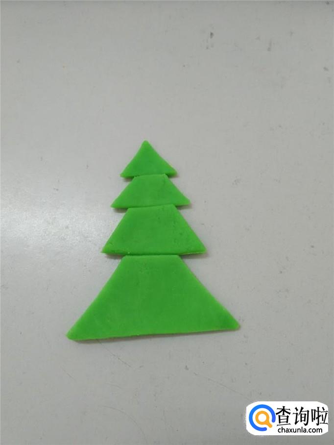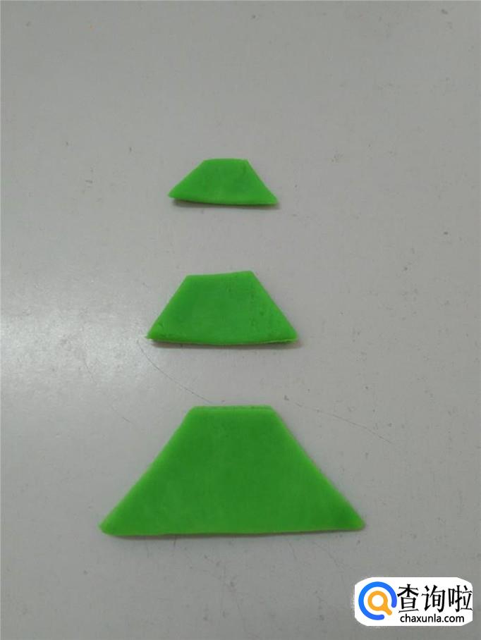 再用绿色彩泥捏三个梯形,一个比一个大。