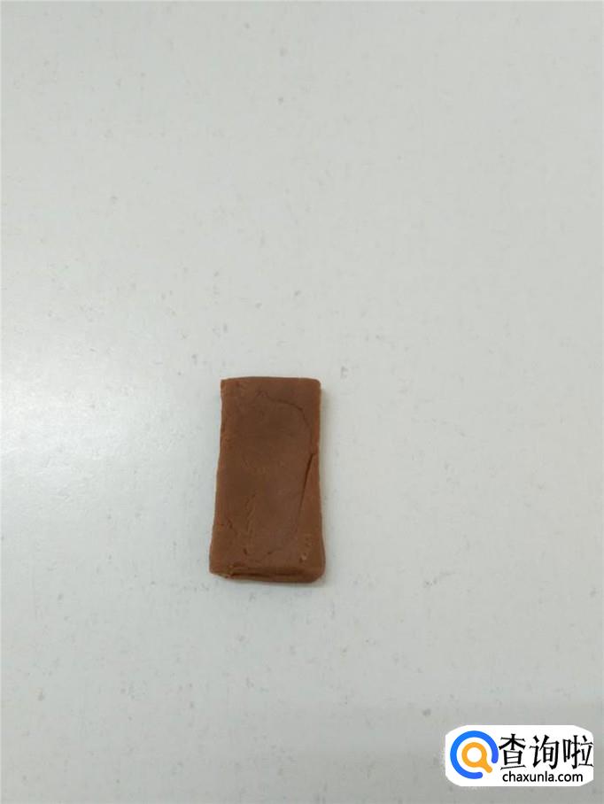 用一块棕色彩泥,捏成长方形,当作树干。