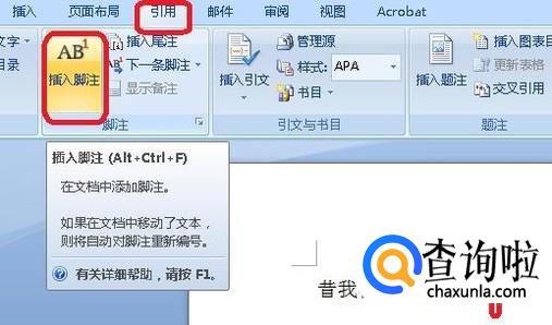 首先,我们打开一个Word文档, 并输入一些文字做演示用,我们需要给文字标记引用符号。光标移到需要标记处(一般需在标点符号之前),点击“引用”,点击“插入脚注”。