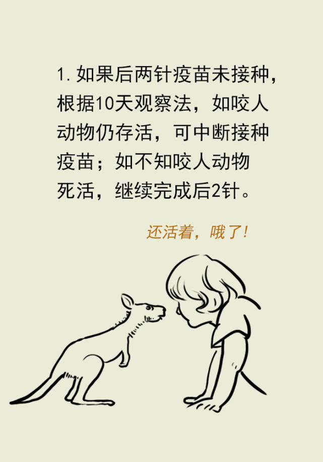 在观察动物情况的同时,被咬伤的人还是需要进行疫苗接种。当观察结束后,动物没有死亡,那么后续的接种程序就可以省略。