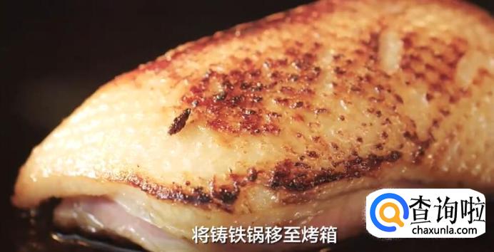 3、如果没有铸铁锅,建议把鸭胸移到烤盘上进行烤制;