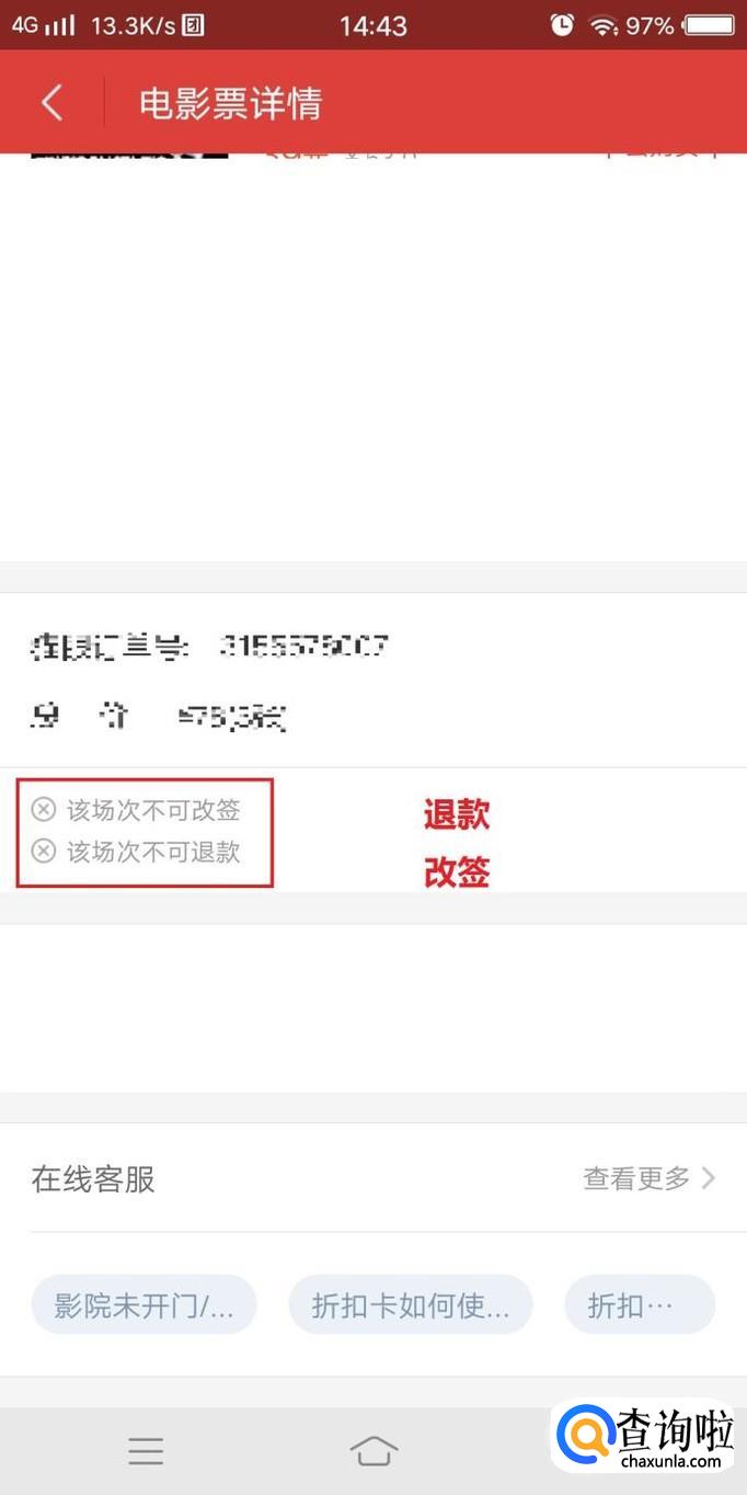 需要值得注意一点的是,即使是可以退票的影院中购买当天的影票也是不可以退票的,在购买的订单中标有“限时退、限时改”字样的才是可以退票的,如图所示