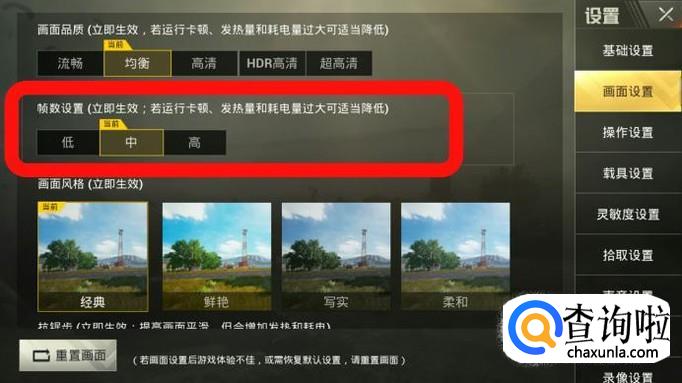 然后再点击帧数设置,把帧数设置调低,然后进行设置。