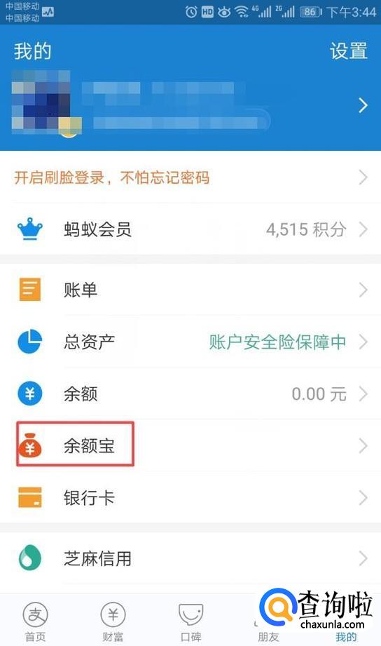 之后我们点击余额宝;