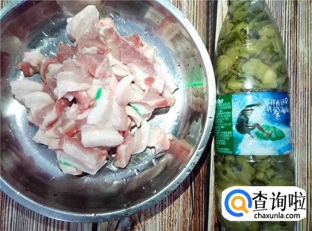 酸菜、五花肉、盐、酱油、花生油、姜、蒜头