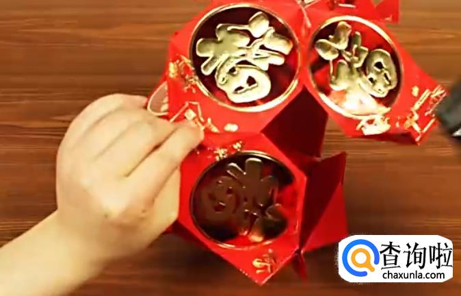 最后将花灯悬挂起来,红包花灯就制作好了。