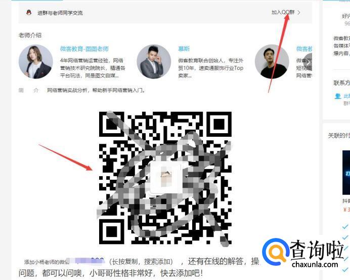 还可以加入QQ学习群或者加老师的微信,进行交流,但是要注意防骗。
