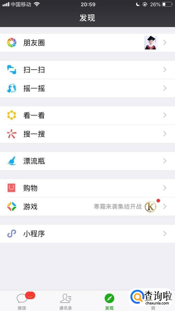 首先点击微信中的朋友圈,如下图所示。