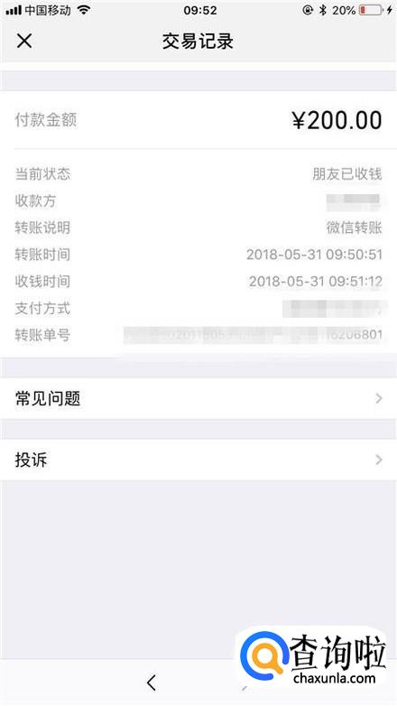 然后点击我们出现问题的转账记录,如下图所示。