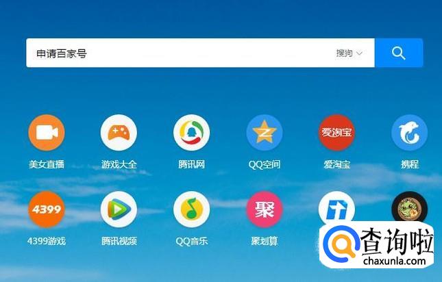 首先在搜狗浏览器中输入申请百家号并点击回车键,如下图所示。