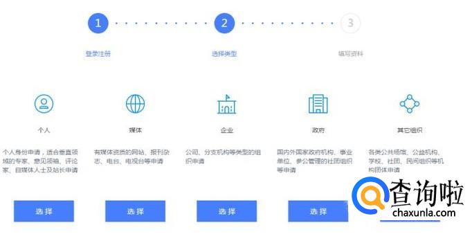 然后选择你要注册的类型,如下图所示。
