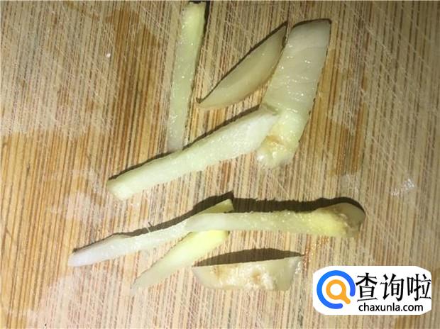 准备一颗老姜,清洗干净,切成姜片。