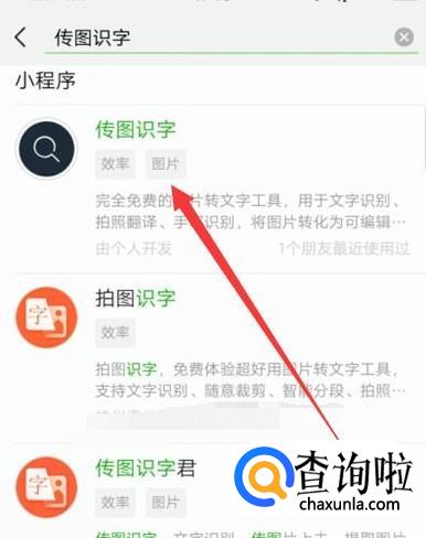 进入之后,搜索“传图识字”,进入下一页面,如图所示。