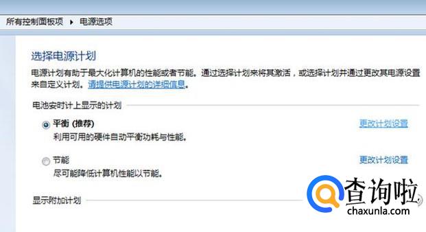 进入电源选项后,在右边可以看到两个“更改计划设置”,在其中一个上点击。